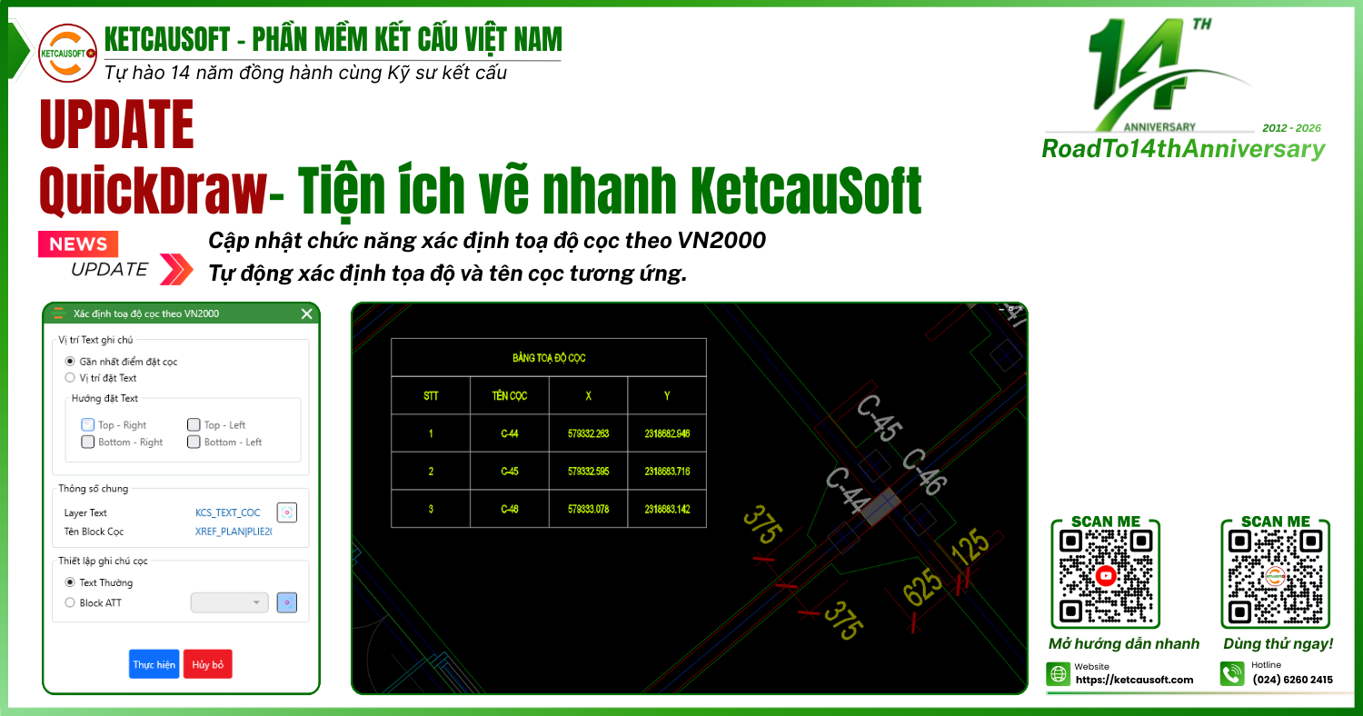 Niềm tự hào của chúng tôi là đã xây dựng được KetcauSoft không chỉ là tập hợp của một số phần mềm, KetcauSoft là một hệ thống hoàn chỉnh cho quy trình thiết kế kết cấu, từ các bước tính toán, thiết kế, thể hiện bản vẽ, biên tập và xuất bản hồ sơ; đi kèm theo đó là những hướng dẫn để các bạn có thể thực hiện các nội dung đó một cách thuận tiện nhất !