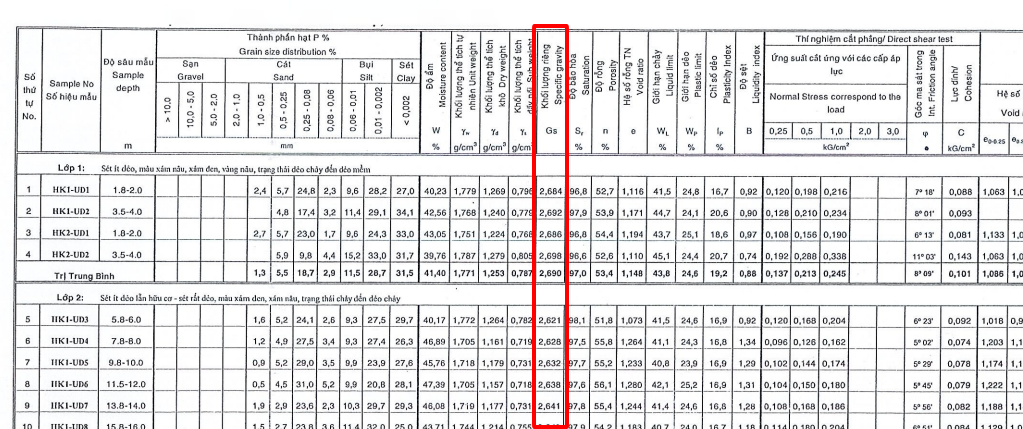 Anh cho em hỏi nó và giá trị nào trong bảng chỉ tiêu cơ lý này vậy (có file pdf đính kèm).