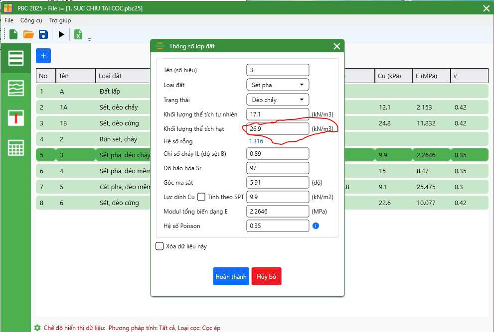 Trong ứng dụng PBC 2025 có yêu cầu nhập giá trị khối lượng thể tích hạt.