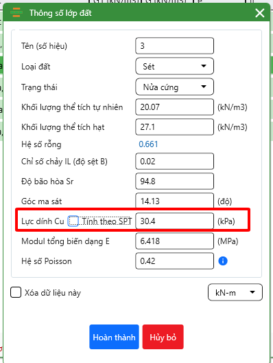 Em chào anh Hùng. Anh cho em hỏi em dùng phần mềm PBC 2025. Em có chỗ này thắc mắc : chỗ thông số lớp đất có lực dính Cu thì em chọn tính theo SPT hay không chọn tính theo SPT ạ. Nếu em chọn tính theo SPT thì ra sức chịu tải của cọc chịu nén lớn, còn nếu em không chọn SPT thì ra sức chịu tải của cọc chịu nén nhỏ