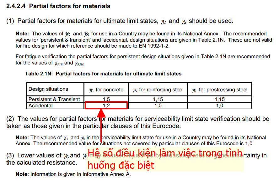 Trong đó fck là cường độ đặc trưng của mẫu lăng trụ và γc là hệ số điều kiện làm việc của bê tông, với lưu ý trong tình huống động đất thì  γc = 1.2