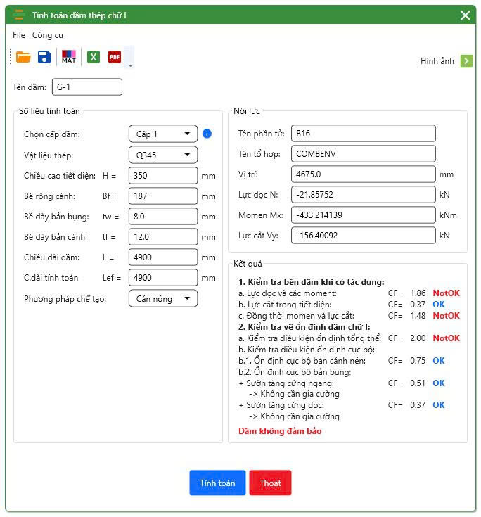✔️ Xuất thuyết minh tính toán và thiết kế: Tự động xuất thuyết minh tính toán, trình bày đầy đủ cơ sở thiết kế, tổ hợp tải trọng, kết quả kiểm tra và các bước tính theo tiêu chuẩn áp dụng.