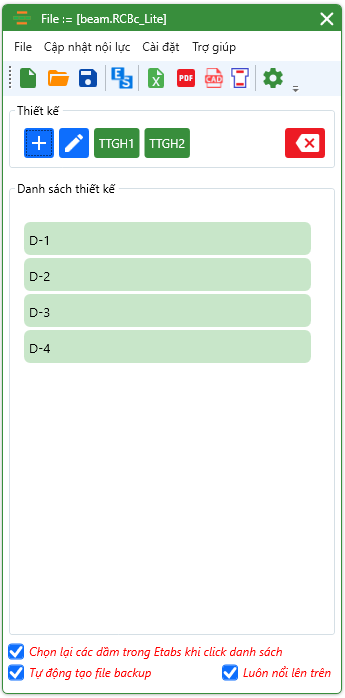 RCBc Lite là phiên bản thu nhỏ của RCBc 2023, cho phép kết nối API trực tiếp với ETABS, SAP2000 và SAFE để đọc nội lực ngay từ mô hình phân tích.