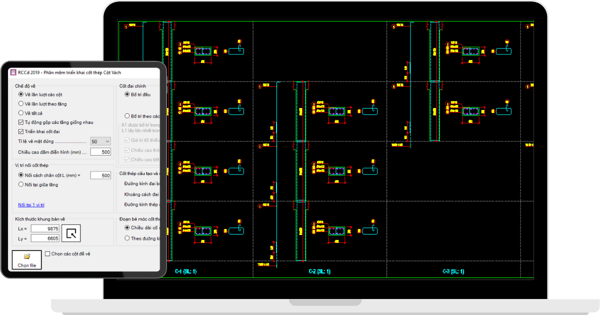 Phần mềm RCCd - Triển khai chi tiết Cột - Vách
